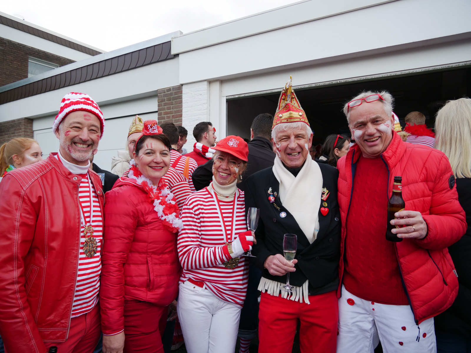 Am Sonntagmittag fing alles damit an, dass sich die ULK-Familie vor der Garage unseres Kleinen-Rats-Bruders Luc Rey traf. Bei bester Verpflegung (Danke an der Stelle noch einmal an Heike Rey, die das Treffen formidabel vorbereitet hatte) stimmten sich knapp 100 ULK-Jecke auf den Kengerzoch ein, der anschließend durch unsere Herzogstadt zog. Auch in diesem Jahr haben wir den „Zoch“ wieder dazu genutzt, die rot-weißen Farben durch unsere Stadt zu tragen und das Stadtbild mit einigen Konfettischnipseln zu verschönern – sehr zur Freude unseres neuen Präsidenten Peter. Zitat: „Ich liebe Konfetti!“
