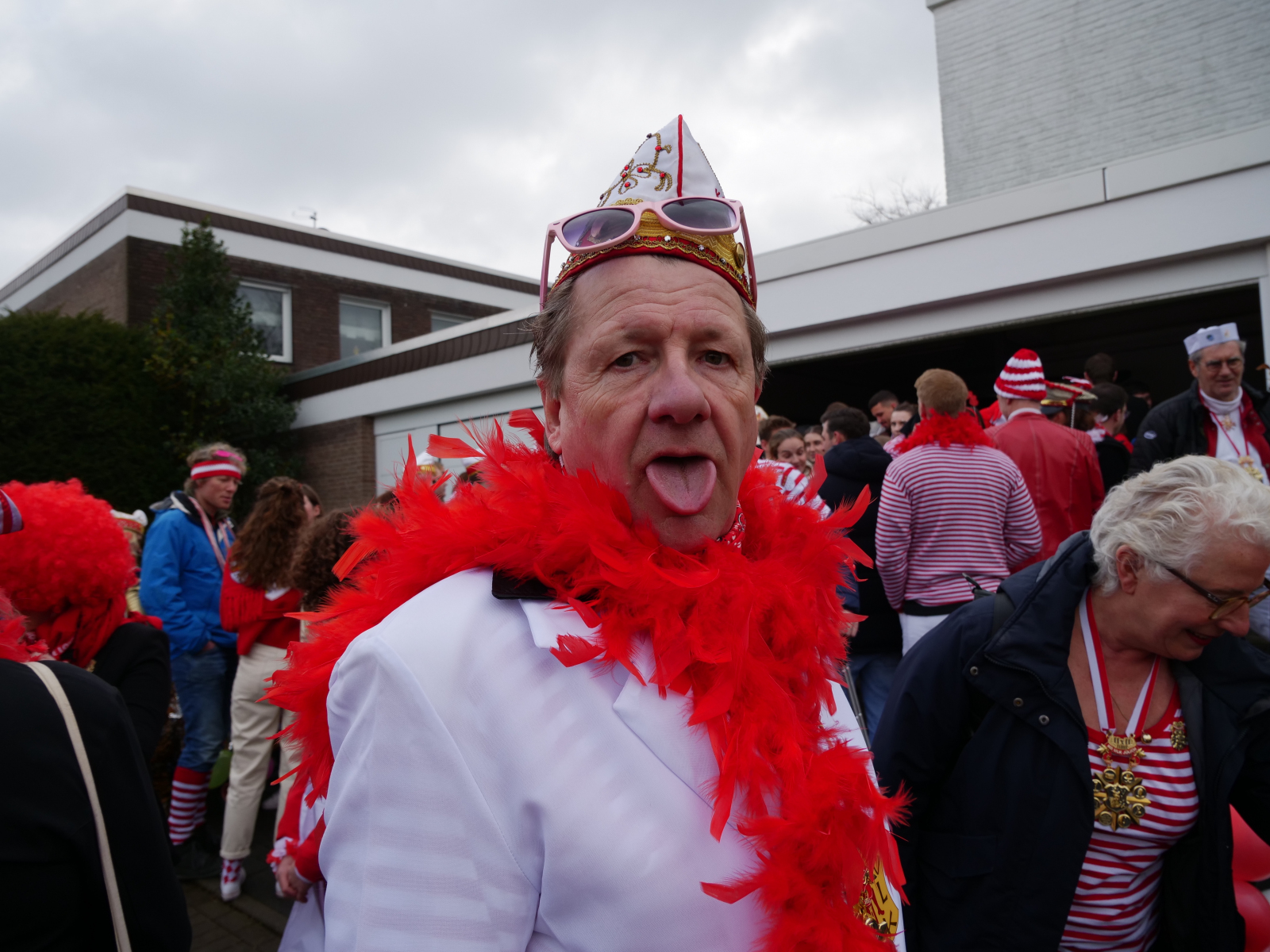 Am Sonntagmittag fing alles damit an, dass sich die ULK-Familie vor der Garage unseres Kleinen-Rats-Bruders Luc Rey traf. Bei bester Verpflegung (Danke an der Stelle noch einmal an Heike Rey, die das Treffen formidabel vorbereitet hatte) stimmten sich knapp 100 ULK-Jecke auf den Kengerzoch ein, der anschließend durch unsere Herzogstadt zog. Auch in diesem Jahr haben wir den „Zoch“ wieder dazu genutzt, die rot-weißen Farben durch unsere Stadt zu tragen und das Stadtbild mit einigen Konfettischnipseln zu verschönern – sehr zur Freude unseres neuen Präsidenten Peter. Zitat: „Ich liebe Konfetti!“