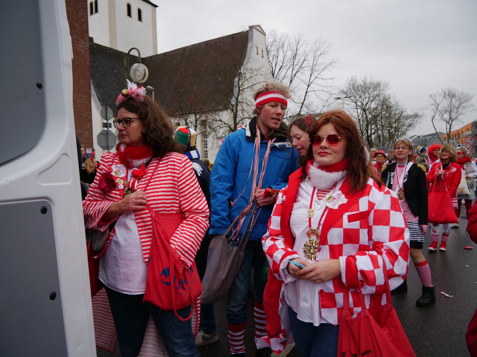Am Sonntagmittag fing alles damit an, dass sich die ULK-Familie vor der Garage unseres Kleinen-Rats-Bruders Luc Rey traf. Bei bester Verpflegung (Danke an der Stelle noch einmal an Heike Rey, die das Treffen formidabel vorbereitet hatte) stimmten sich knapp 100 ULK-Jecke auf den Kengerzoch ein, der anschließend durch unsere Herzogstadt zog. Auch in diesem Jahr haben wir den „Zoch“ wieder dazu genutzt, die rot-weißen Farben durch unsere Stadt zu tragen und das Stadtbild mit einigen Konfettischnipseln zu verschönern – sehr zur Freude unseres neuen Präsidenten Peter. Zitat: „Ich liebe Konfetti!“