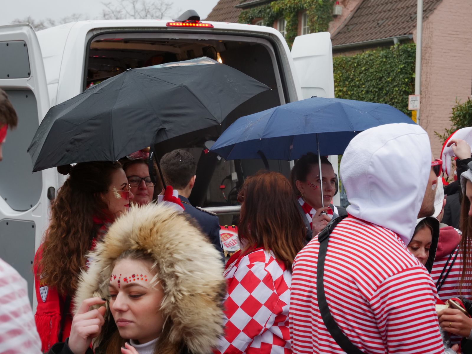 Am Sonntagmittag fing alles damit an, dass sich die ULK-Familie vor der Garage unseres Kleinen-Rats-Bruders Luc Rey traf. Bei bester Verpflegung (Danke an der Stelle noch einmal an Heike Rey, die das Treffen formidabel vorbereitet hatte) stimmten sich knapp 100 ULK-Jecke auf den Kengerzoch ein, der anschließend durch unsere Herzogstadt zog. Auch in diesem Jahr haben wir den „Zoch“ wieder dazu genutzt, die rot-weißen Farben durch unsere Stadt zu tragen und das Stadtbild mit einigen Konfettischnipseln zu verschönern – sehr zur Freude unseres neuen Präsidenten Peter. Zitat: „Ich liebe Konfetti!“