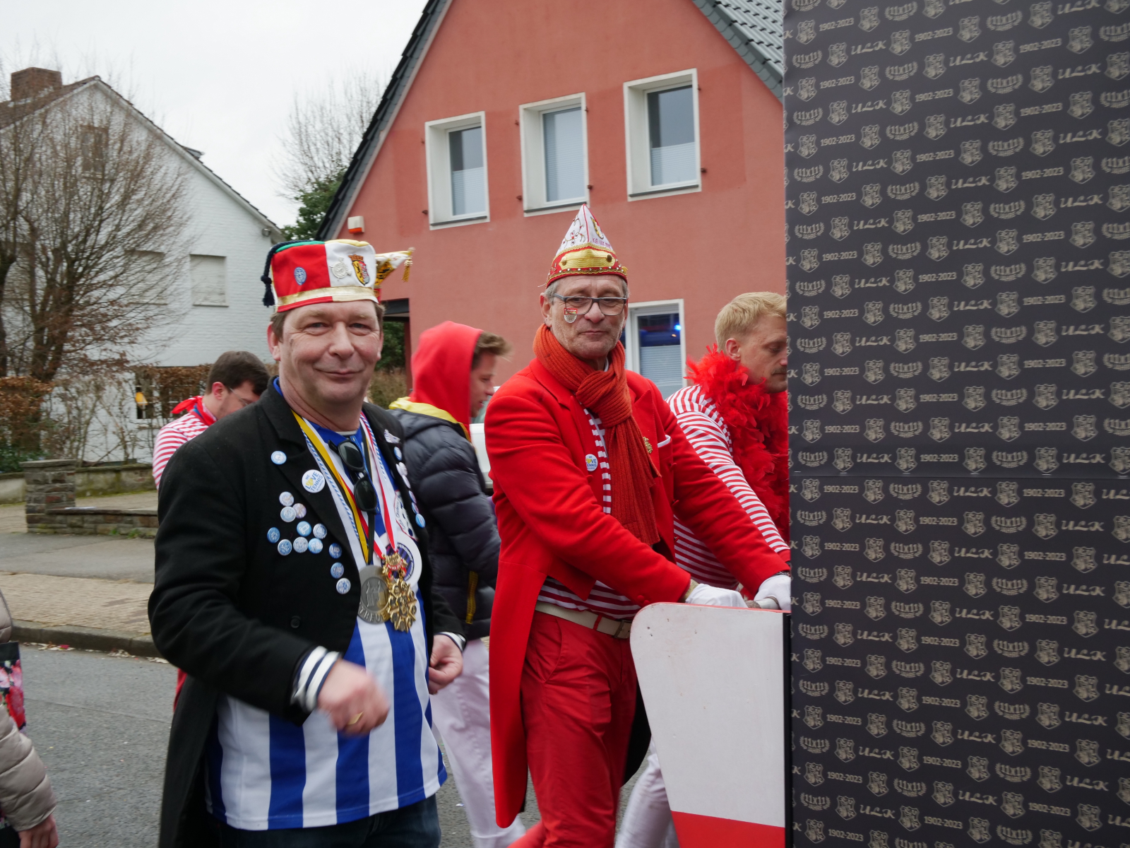Am Sonntagmittag fing alles damit an, dass sich die ULK-Familie vor der Garage unseres Kleinen-Rats-Bruders Luc Rey traf. Bei bester Verpflegung (Danke an der Stelle noch einmal an Heike Rey, die das Treffen formidabel vorbereitet hatte) stimmten sich knapp 100 ULK-Jecke auf den Kengerzoch ein, der anschließend durch unsere Herzogstadt zog. Auch in diesem Jahr haben wir den „Zoch“ wieder dazu genutzt, die rot-weißen Farben durch unsere Stadt zu tragen und das Stadtbild mit einigen Konfettischnipseln zu verschönern – sehr zur Freude unseres neuen Präsidenten Peter. Zitat: „Ich liebe Konfetti!“