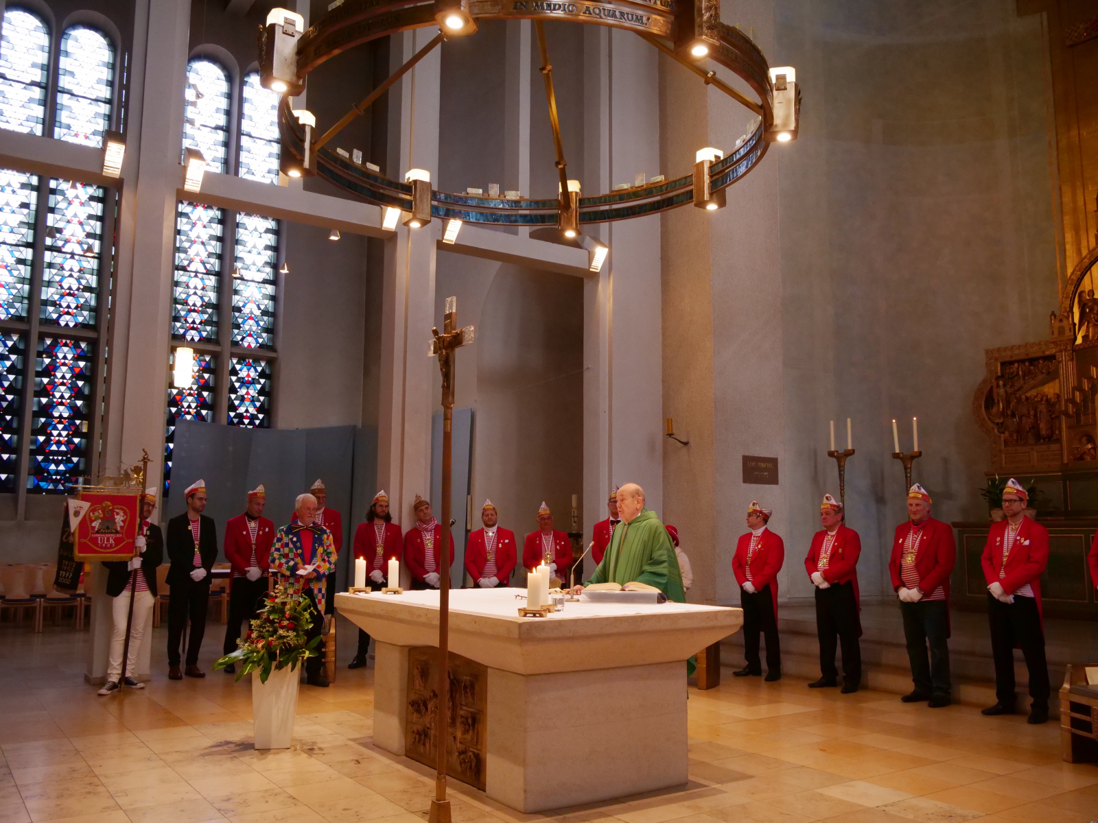 Nach einer kurzen Nacht traf sich der Kleine Rat am Rosenmontag dann schon um kurz nach 10 Uhr in der Propsteikirche mitten in Jülichs Innenstadt. Dort feierten wir unsere traditionelle Mundartmesse – unter der Leitung von Pfarrer Helmut Macherey. Die Veranstaltung war wie immer besinnlich und hielt besonders bei den auf der Orgel gespielten und lautstark mitgesungenen Karnevalsliedern einige schöne emotionale Highlights parat. Wir möchten an dieser Stelle unserem ULK-Urgestein Heino Bücher für die Organisation der Messe danken.