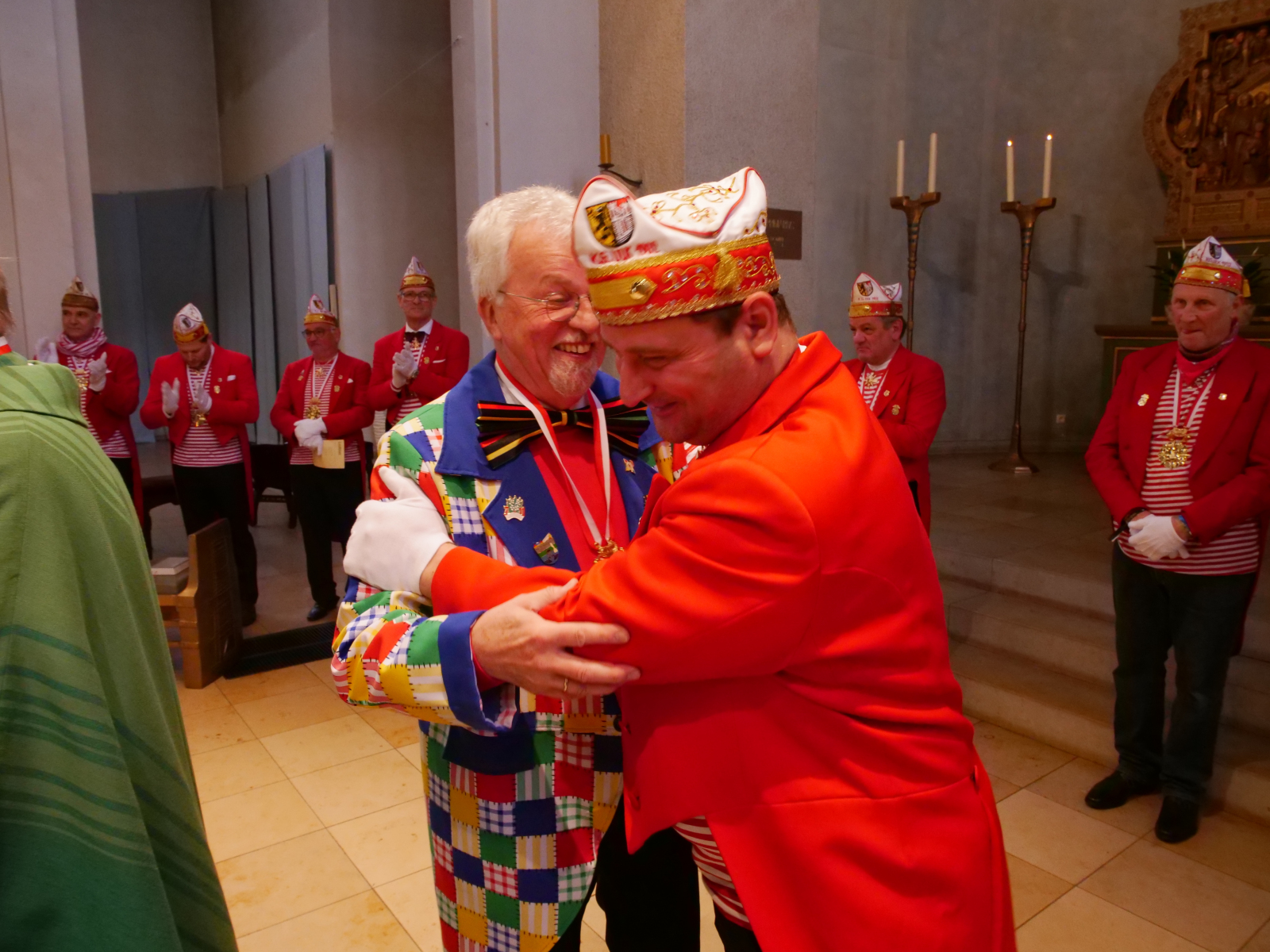 Nach einer kurzen Nacht traf sich der Kleine Rat am Rosenmontag dann schon um kurz nach 10 Uhr in der Propsteikirche mitten in Jülichs Innenstadt. Dort feierten wir unsere traditionelle Mundartmesse – unter der Leitung von Pfarrer Helmut Macherey. Die Veranstaltung war wie immer besinnlich und hielt besonders bei den auf der Orgel gespielten und lautstark mitgesungenen Karnevalsliedern einige schöne emotionale Highlights parat. Wir möchten an dieser Stelle unserem ULK-Urgestein Heino Bücher für die Organisation der Messe danken.