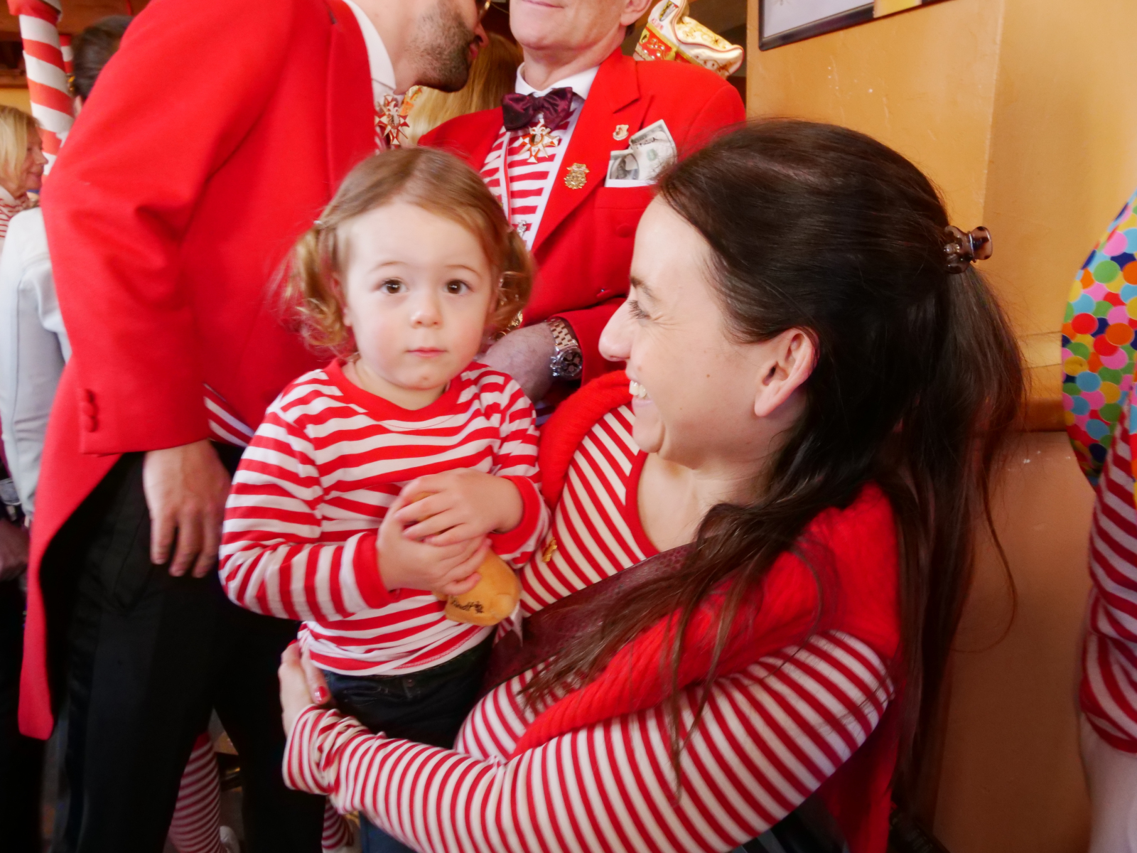 Am Sonntagmittag fing alles damit an, dass sich die ULK-Familie vor der Garage unseres Kleinen-Rats-Bruders Luc Rey traf. Bei bester Verpflegung (Danke an der Stelle noch einmal an Heike Rey, die das Treffen formidabel vorbereitet hatte) stimmten sich knapp 100 ULK-Jecke auf den Kengerzoch ein, der anschließend durch unsere Herzogstadt zog. Auch in diesem Jahr haben wir den „Zoch“ wieder dazu genutzt, die rot-weißen Farben durch unsere Stadt zu tragen und das Stadtbild mit einigen Konfettischnipseln zu verschönern – sehr zur Freude unseres neuen Präsidenten Peter. Zitat: „Ich liebe Konfetti!“