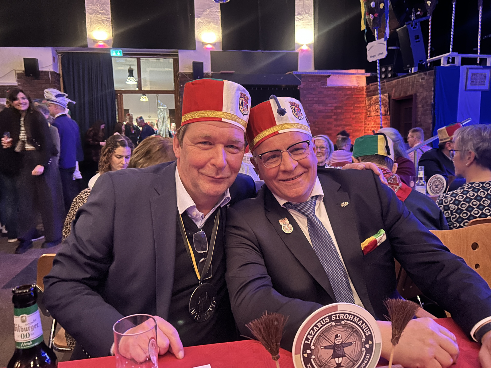 Am Samstagabend wurde unser Ehrenpräsident Jörg Bücher bei der Taufe der Historischen Gesellschaft Lazarus Strohmanus zum Ordensträger der Session 2025/26 ernannt. Der Kleine Rat war mit einer stattlichen ULK-Mannschaft dabei!