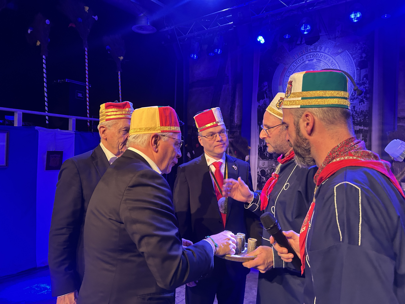In dieser Funktion durfte Jörg gegen 20.40 Uhr als neuer Ordensträger die Bühne des Kulturbahnhofs betreten und gemeinsam mit Lazarus-Präsident David Ningelgen, Senatspräsident Dr. Linus Wiederholt und dem Ordensträger 2025, Uwe Groteklaes, die Taufe der Lazarus-Puppe vornehmen. Sichtlich stolz sagte Jörg im Anschluss: „Es ist wirklich eine riesige Ehre und sehr besonders für mich hier stehen zu dürfen. 22 Jahre nach meinem Vater Heino und 49 Jahre nach meinem Schwiegervater Egbert. Ich danke von Herzen für diese Auszeichnung und freue mich sehr auf alles, was in den nächsten Wochen folgt!“