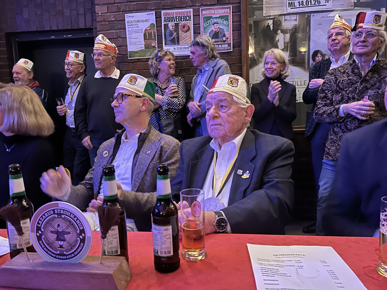 Die Kuba-Halle war mehr als ordentlich gefüllt und auch für unsere KG ULK war die Lazarus-Taufe 2026 ein besonderer Abend, weshalb es sich eine ordentliche Gruppe aus Kleinen-Rats-Mitgliedern und Senatoren nicht nehmen ließ der Veranstaltung beizuwohnen. Hintergrund war die Ernennung unseres Ehrenpräsidenten Jörg Bücher zum diesjährigen „Pattühm“ der Historischen Gesellschaft Lazarus Strohmanus.