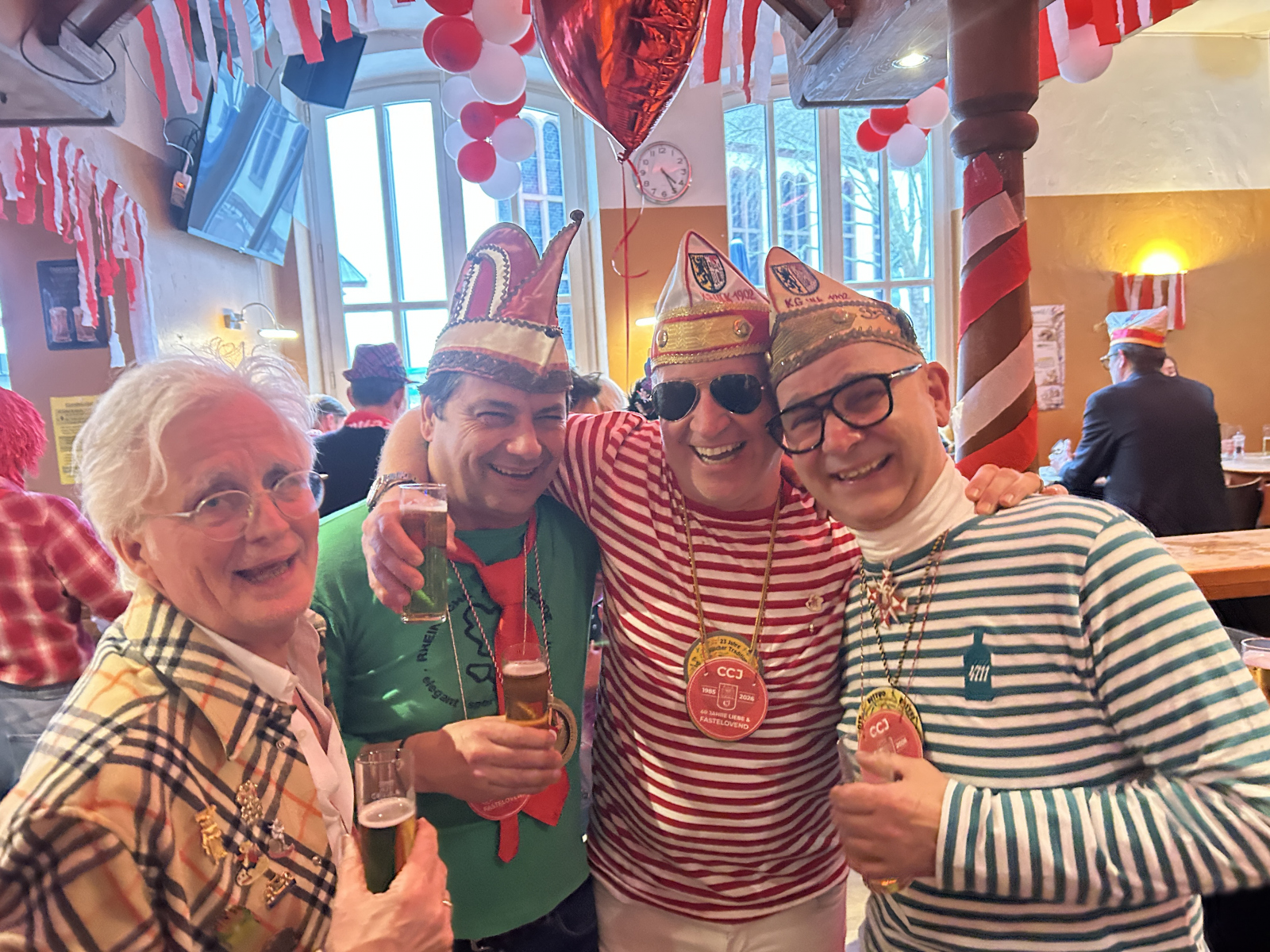 Es folgte ein wirklich besonderer Karnevalssamstag. Der kleine private Karnevalsverein „CCJ“ (Carnevals Club Jan von Werth), zu dem auch unsere Kleinen-Rats-Freunde Luc Rey, Guido Dohmen und Thomas Kraus zählen, blickte im Liebevoll in Jülich auf 40 gemeinsame Jahre zurück. Eine wirklich gelungene und rührselige Veranstaltung in bester Kneipenkarneval-Atmosphäre, zu der sich diverse Kleine-Rats-Mitglieder und deren Familien die Ehre gaben. Die zahlreichen hörens- und sehenswerten Reden sowie Video-Einspieler sorgten für viel Nostalgie und Wehmut. Auch die eine oder andere Träne floss in Gedenken an bereits verstorbene CCJ-Freunde. Wir gratulieren den Jungs von Herzen zu 40 Jahren CCJ und freuen uns jetzt schon auf die angekündigte Fortsetzung in den nächsten Jahren…