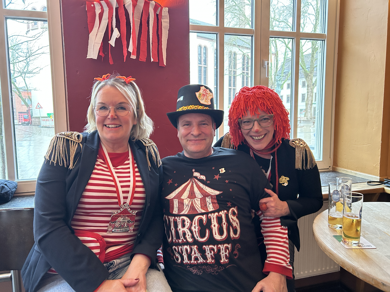 Der Karnevalssonntag stand dann natürlich ganz im Zeichen des Kengerzochs, wobei sich der Kleine Rat am Morgen erst einmal zweiteilen musste: Der etwas erfahrenere Teil besuchte das Rathaus, in dem die Historische Gesellschaft Lazarus Strohmanus den Hexenturmorden an unseren Ehrenpräsidenten Jörg Bücher, ihren diesjährigen Pattühm, verlieh. Der andere Teil organisierte an der Blumenhalle die Ausgabe der Afterzoch-Bändchen sowie das Treffen der ULK-Fußgruppe vor dem Kengerzoch. Ein herzlicher Dank an dieser Stelle an Thomas Kraus, der die kompletten Getränke in der Blumenhalle sponsorte, Frank Lieth und Ferdi Wagemann für die Hot Dog-Spende sowie an Sabine Küppers, die Mutter unseres Vizepräsidenten Christoph, für einen hervorragenden Kuchen. Nach einer kleinen Wagen-Engel-Schrecksekunde unmittelbar vor dem Start des Kengerzochs, die wir an dieser Stelle aber nicht noch einmal aufrollen wollen, erlebten wir einen überraschend sonnigen und stimmigen Karnevals-Umzug 2026, den wir im Anschluss mit der ULK-Familie im Kulturbahnhof ausklingen ließen. Ein Dank an dieser Stelle an Cornel Cremer und sein Kuba-Team für die tolle Organisation!
