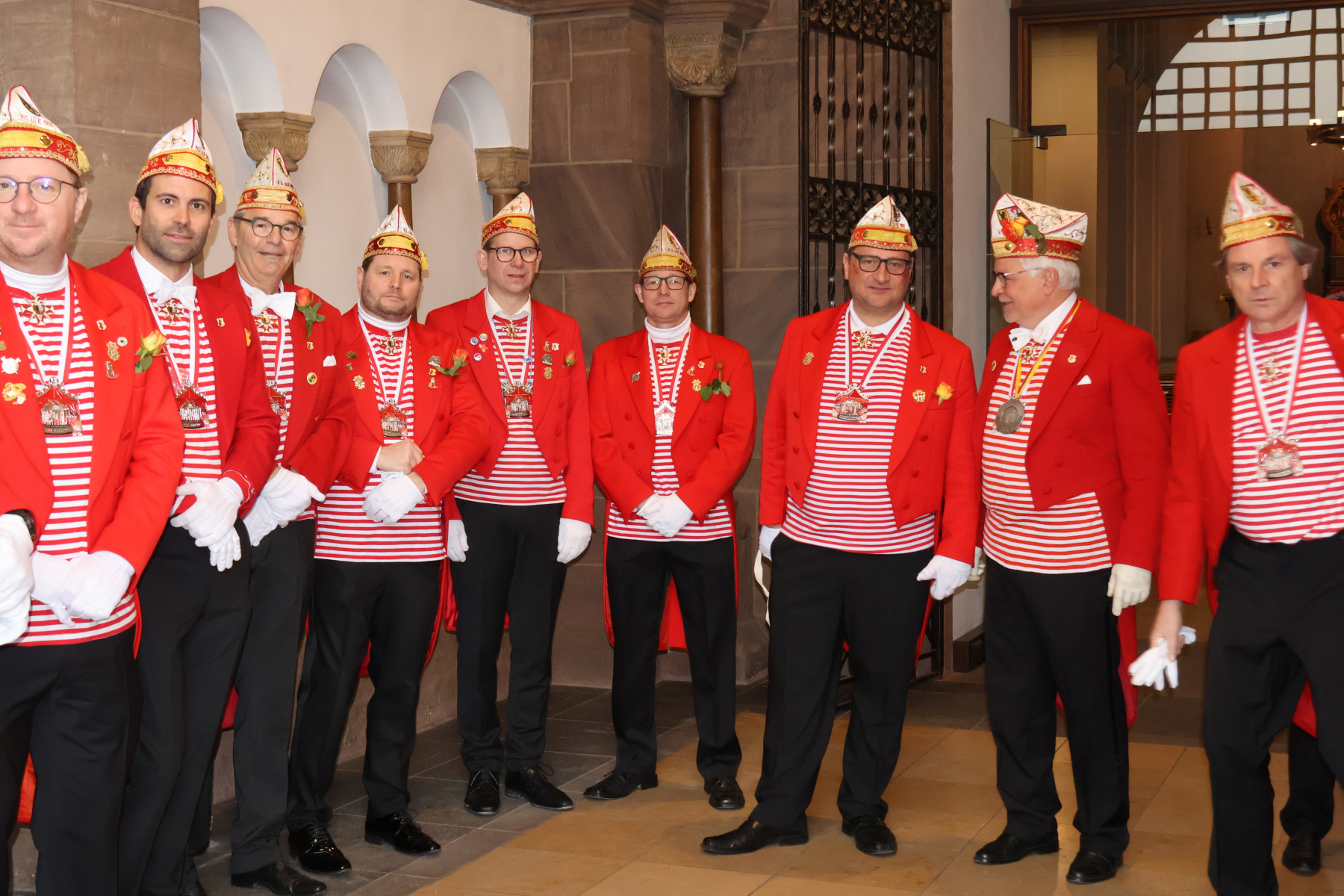 Der Karnevalssonntag stand dann natürlich ganz im Zeichen des Kengerzochs, wobei sich der Kleine Rat am Morgen erst einmal zweiteilen musste: Der etwas erfahrenere Teil besuchte das Rathaus, in dem die Historische Gesellschaft Lazarus Strohmanus den Hexenturmorden an unseren Ehrenpräsidenten Jörg Bücher, ihren diesjährigen Pattühm, verlieh. Der andere Teil organisierte an der Blumenhalle die Ausgabe der Afterzoch-Bändchen sowie das Treffen der ULK-Fußgruppe vor dem Kengerzoch. Ein herzlicher Dank an dieser Stelle an Thomas Kraus, der die kompletten Getränke in der Blumenhalle sponsorte, Frank Lieth und Ferdi Wagemann für die Hot Dog-Spende sowie an Sabine Küppers, die Mutter unseres Vizepräsidenten Christoph, für einen hervorragenden Kuchen. Nach einer kleinen Wagen-Engel-Schrecksekunde unmittelbar vor dem Start des Kengerzochs, die wir an dieser Stelle aber nicht noch einmal aufrollen wollen, erlebten wir einen überraschend sonnigen und stimmigen Karnevals-Umzug 2026, den wir im Anschluss mit der ULK-Familie im Kulturbahnhof ausklingen ließen. Ein Dank an dieser Stelle an Cornel Cremer und sein Kuba-Team für die tolle Organisation!