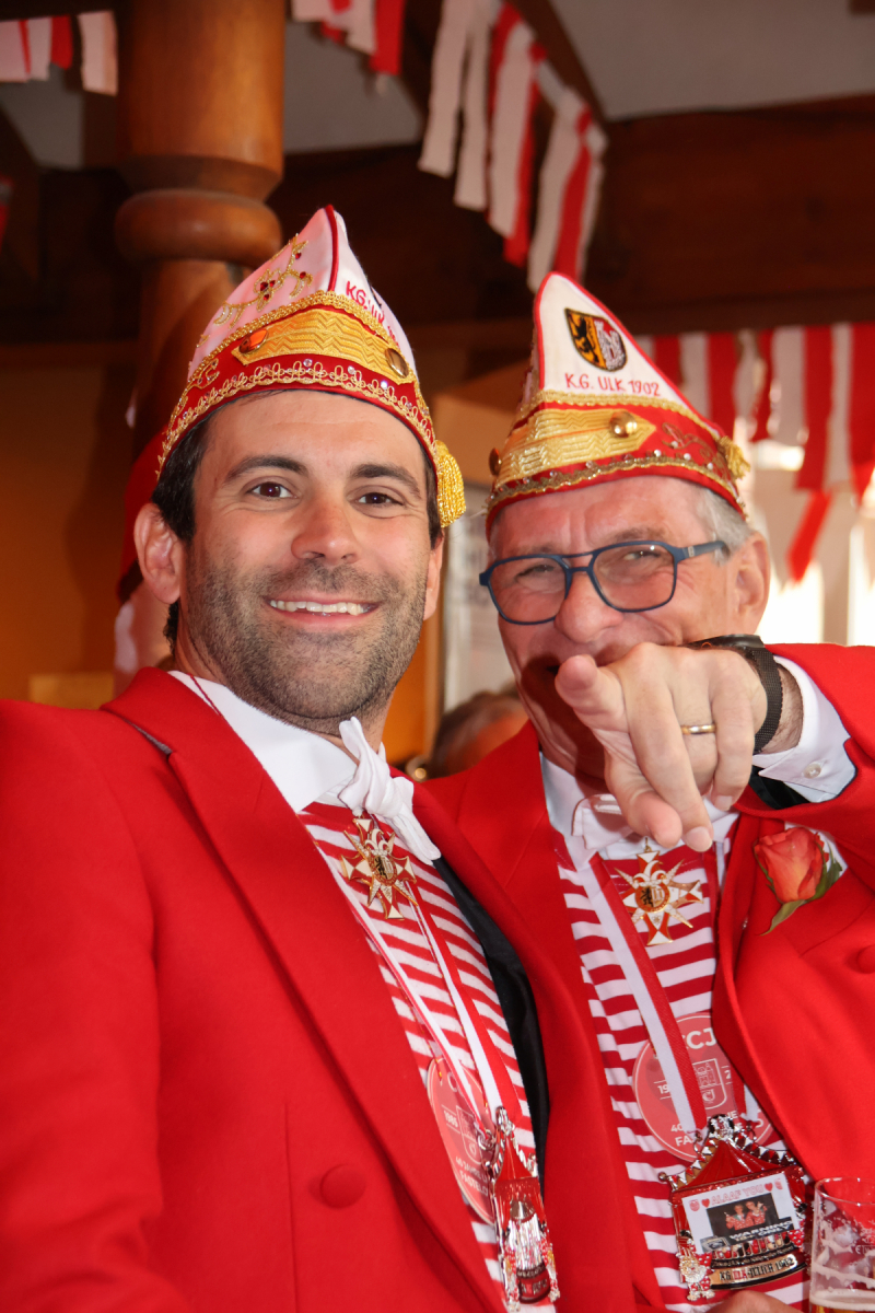 Der Karnevalssonntag stand dann natürlich ganz im Zeichen des Kengerzochs, wobei sich der Kleine Rat am Morgen erst einmal zweiteilen musste: Der etwas erfahrenere Teil besuchte das Rathaus, in dem die Historische Gesellschaft Lazarus Strohmanus den Hexenturmorden an unseren Ehrenpräsidenten Jörg Bücher, ihren diesjährigen Pattühm, verlieh. Der andere Teil organisierte an der Blumenhalle die Ausgabe der Afterzoch-Bändchen sowie das Treffen der ULK-Fußgruppe vor dem Kengerzoch. Ein herzlicher Dank an dieser Stelle an Thomas Kraus, der die kompletten Getränke in der Blumenhalle sponsorte, Frank Lieth und Ferdi Wagemann für die Hot Dog-Spende sowie an Sabine Küppers, die Mutter unseres Vizepräsidenten Christoph, für einen hervorragenden Kuchen. Nach einer kleinen Wagen-Engel-Schrecksekunde unmittelbar vor dem Start des Kengerzochs, die wir an dieser Stelle aber nicht noch einmal aufrollen wollen, erlebten wir einen überraschend sonnigen und stimmigen Karnevals-Umzug 2026, den wir im Anschluss mit der ULK-Familie im Kulturbahnhof ausklingen ließen. Ein Dank an dieser Stelle an Cornel Cremer und sein Kuba-Team für die tolle Organisation!
