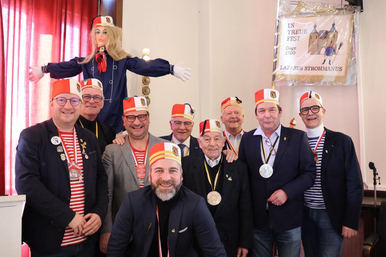 Der Karnevalssonntag stand dann natürlich ganz im Zeichen des Kengerzochs, wobei sich der Kleine Rat am Morgen erst einmal zweiteilen musste: Der etwas erfahrenere Teil besuchte das Rathaus, in dem die Historische Gesellschaft Lazarus Strohmanus den Hexenturmorden an unseren Ehrenpräsidenten Jörg Bücher, ihren diesjährigen Pattühm, verlieh. Der andere Teil organisierte an der Blumenhalle die Ausgabe der Afterzoch-Bändchen sowie das Treffen der ULK-Fußgruppe vor dem Kengerzoch. Ein herzlicher Dank an dieser Stelle an Thomas Kraus, der die kompletten Getränke in der Blumenhalle sponsorte, Frank Lieth und Ferdi Wagemann für die Hot Dog-Spende sowie an Sabine Küppers, die Mutter unseres Vizepräsidenten Christoph, für einen hervorragenden Kuchen. Nach einer kleinen Wagen-Engel-Schrecksekunde unmittelbar vor dem Start des Kengerzochs, die wir an dieser Stelle aber nicht noch einmal aufrollen wollen, erlebten wir einen überraschend sonnigen und stimmigen Karnevals-Umzug 2026, den wir im Anschluss mit der ULK-Familie im Kulturbahnhof ausklingen ließen. Ein Dank an dieser Stelle an Cornel Cremer und sein Kuba-Team für die tolle Organisation!