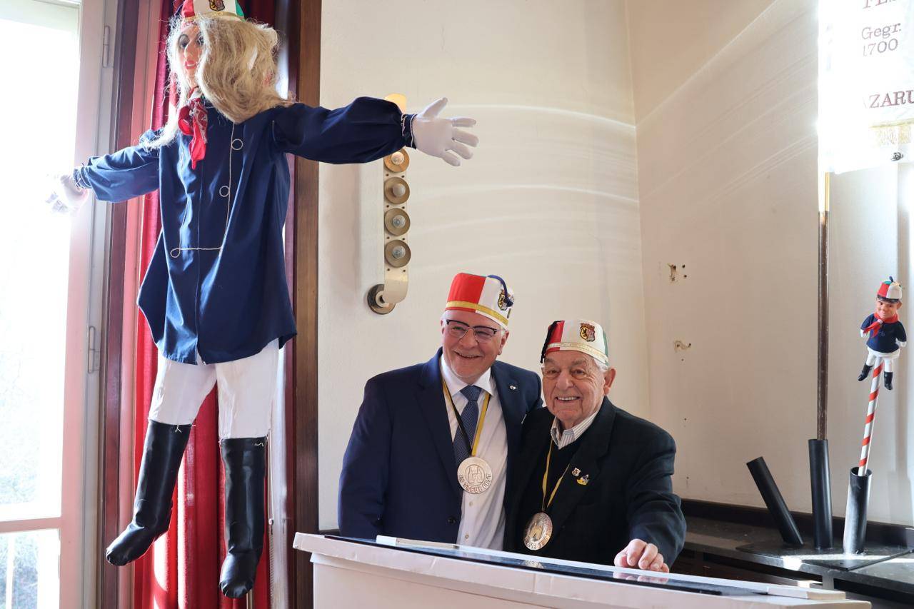 Der Karnevalssonntag stand dann natürlich ganz im Zeichen des Kengerzochs, wobei sich der Kleine Rat am Morgen erst einmal zweiteilen musste: Der etwas erfahrenere Teil besuchte das Rathaus, in dem die Historische Gesellschaft Lazarus Strohmanus den Hexenturmorden an unseren Ehrenpräsidenten Jörg Bücher, ihren diesjährigen Pattühm, verlieh. Der andere Teil organisierte an der Blumenhalle die Ausgabe der Afterzoch-Bändchen sowie das Treffen der ULK-Fußgruppe vor dem Kengerzoch. Ein herzlicher Dank an dieser Stelle an Thomas Kraus, der die kompletten Getränke in der Blumenhalle sponsorte, Frank Lieth und Ferdi Wagemann für die Hot Dog-Spende sowie an Sabine Küppers, die Mutter unseres Vizepräsidenten Christoph, für einen hervorragenden Kuchen. Nach einer kleinen Wagen-Engel-Schrecksekunde unmittelbar vor dem Start des Kengerzochs, die wir an dieser Stelle aber nicht noch einmal aufrollen wollen, erlebten wir einen überraschend sonnigen und stimmigen Karnevals-Umzug 2026, den wir im Anschluss mit der ULK-Familie im Kulturbahnhof ausklingen ließen. Ein Dank an dieser Stelle an Cornel Cremer und sein Kuba-Team für die tolle Organisation!