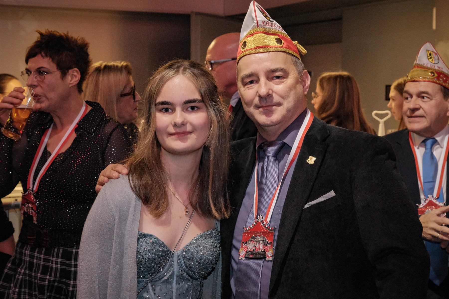 Am Abend traf sich der Kleine Rat dann bereits gegen 18.30 Uhr zu letzten Absprachen und einem gemeinsamen Foto. Die Blumenhalle war wieder einmal festlich geschmückt – Danke deshalb an ULK-Baumeister Lars Zopp und viele fleißige Unterstützer im Vorfeld. Am Abend trudelten die ersten Jecken bereits gegen 19.15 Uhr ein. Etwas mehr als eine Stunde später begrüßten dann Präsident Peter Plantikow und Vize-Präsident Christoph Küppers offiziell die vielen wunderbar in Abendgarderobe geworfenen Gäste!