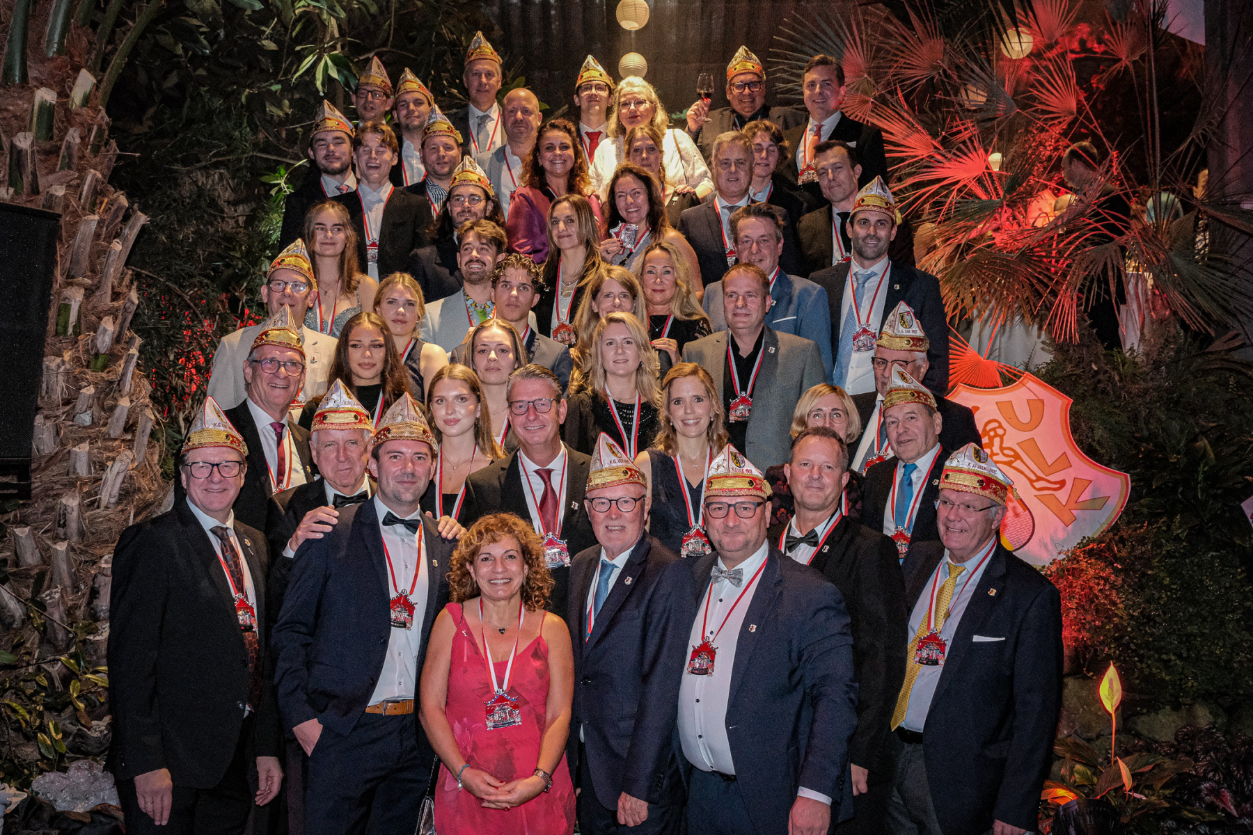 Am Abend traf sich der Kleine Rat dann bereits gegen 18.30 Uhr zu letzten Absprachen und einem gemeinsamen Foto. Die Blumenhalle war wieder einmal festlich geschmückt – Danke deshalb an ULK-Baumeister Lars Zopp und viele fleißige Unterstützer im Vorfeld. Am Abend trudelten die ersten Jecken bereits gegen 19.15 Uhr ein. Etwas mehr als eine Stunde später begrüßten dann Präsident Peter Plantikow und Vize-Präsident Christoph Küppers offiziell die vielen wunderbar in Abendgarderobe geworfenen Gäste!