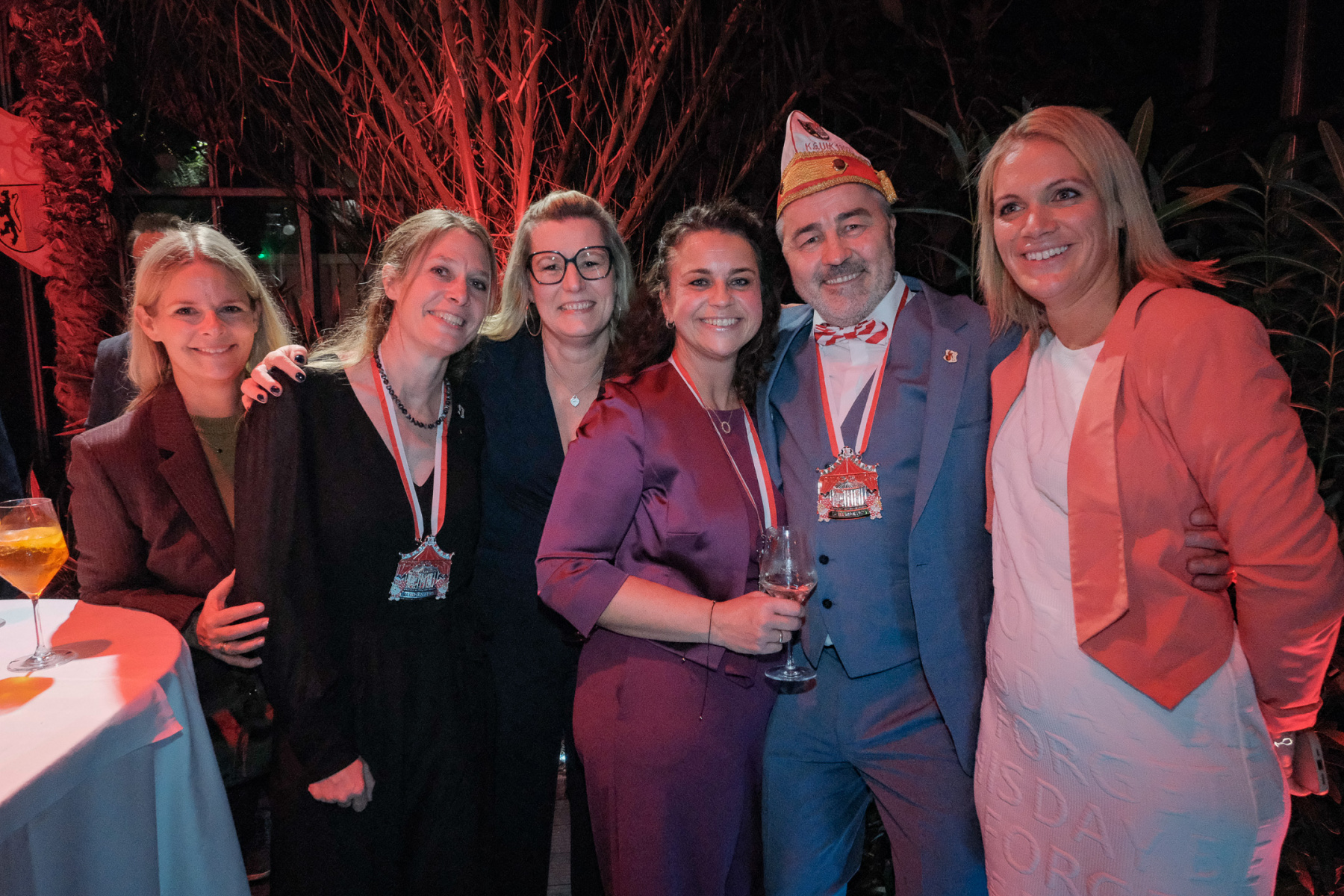 Am Abend traf sich der Kleine Rat dann bereits gegen 18.30 Uhr zu letzten Absprachen und einem gemeinsamen Foto. Die Blumenhalle war wieder einmal festlich geschmückt – Danke deshalb an ULK-Baumeister Lars Zopp und viele fleißige Unterstützer im Vorfeld. Am Abend trudelten die ersten Jecken bereits gegen 19.15 Uhr ein. Etwas mehr als eine Stunde später begrüßten dann Präsident Peter Plantikow und Vize-Präsident Christoph Küppers offiziell die vielen wunderbar in Abendgarderobe geworfenen Gäste!