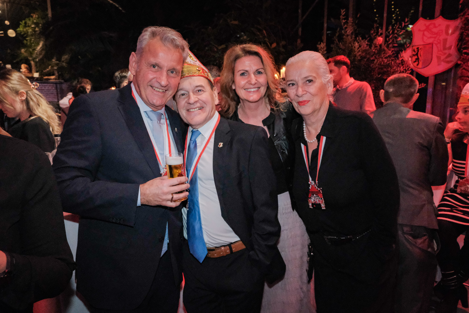 Am Abend traf sich der Kleine Rat dann bereits gegen 18.30 Uhr zu letzten Absprachen und einem gemeinsamen Foto. Die Blumenhalle war wieder einmal festlich geschmückt – Danke deshalb an ULK-Baumeister Lars Zopp und viele fleißige Unterstützer im Vorfeld. Am Abend trudelten die ersten Jecken bereits gegen 19.15 Uhr ein. Etwas mehr als eine Stunde später begrüßten dann Präsident Peter Plantikow und Vize-Präsident Christoph Küppers offiziell die vielen wunderbar in Abendgarderobe geworfenen Gäste!
