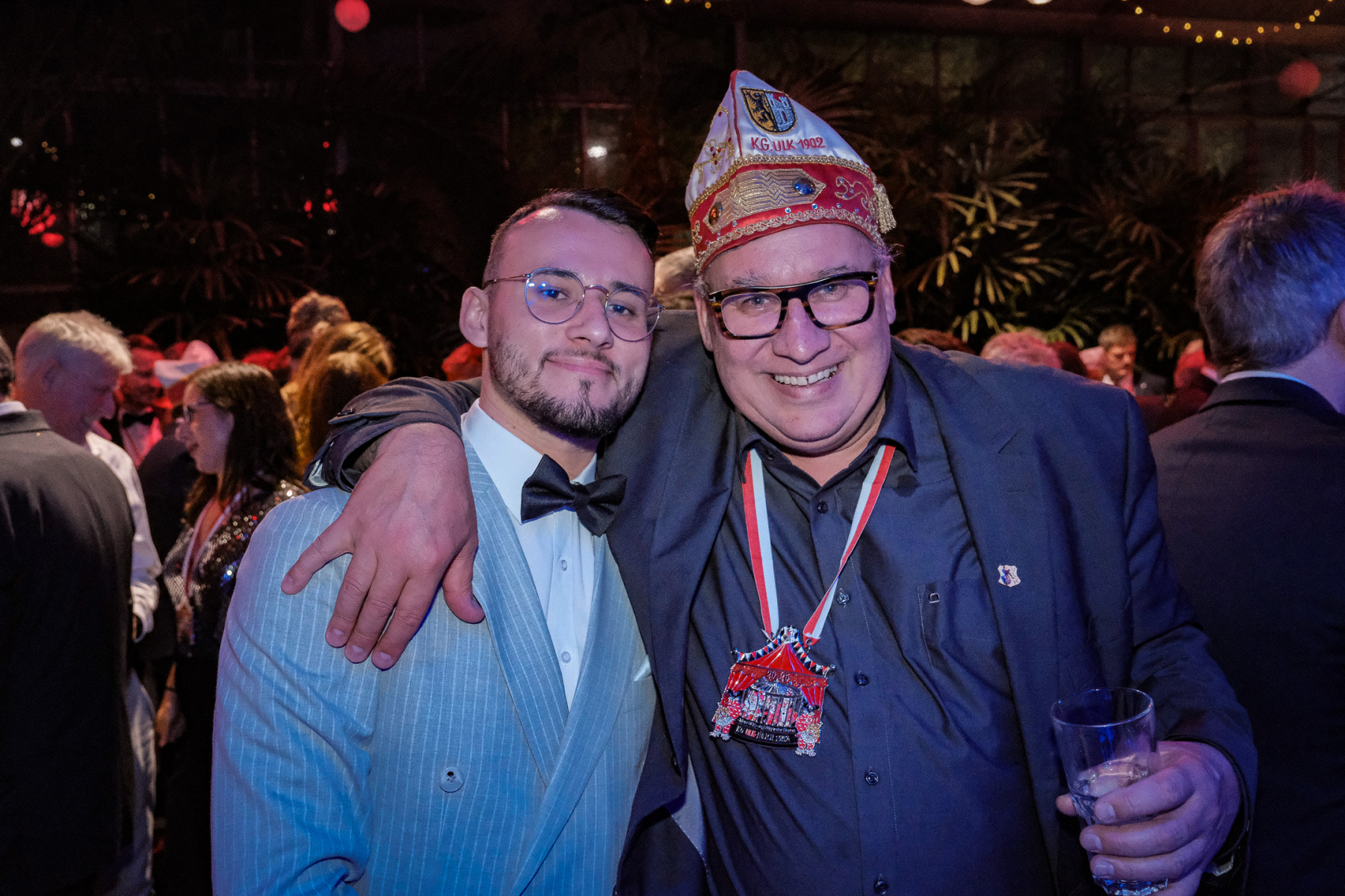 Am Abend traf sich der Kleine Rat dann bereits gegen 18.30 Uhr zu letzten Absprachen und einem gemeinsamen Foto. Die Blumenhalle war wieder einmal festlich geschmückt – Danke deshalb an ULK-Baumeister Lars Zopp und viele fleißige Unterstützer im Vorfeld. Am Abend trudelten die ersten Jecken bereits gegen 19.15 Uhr ein. Etwas mehr als eine Stunde später begrüßten dann Präsident Peter Plantikow und Vize-Präsident Christoph Küppers offiziell die vielen wunderbar in Abendgarderobe geworfenen Gäste!