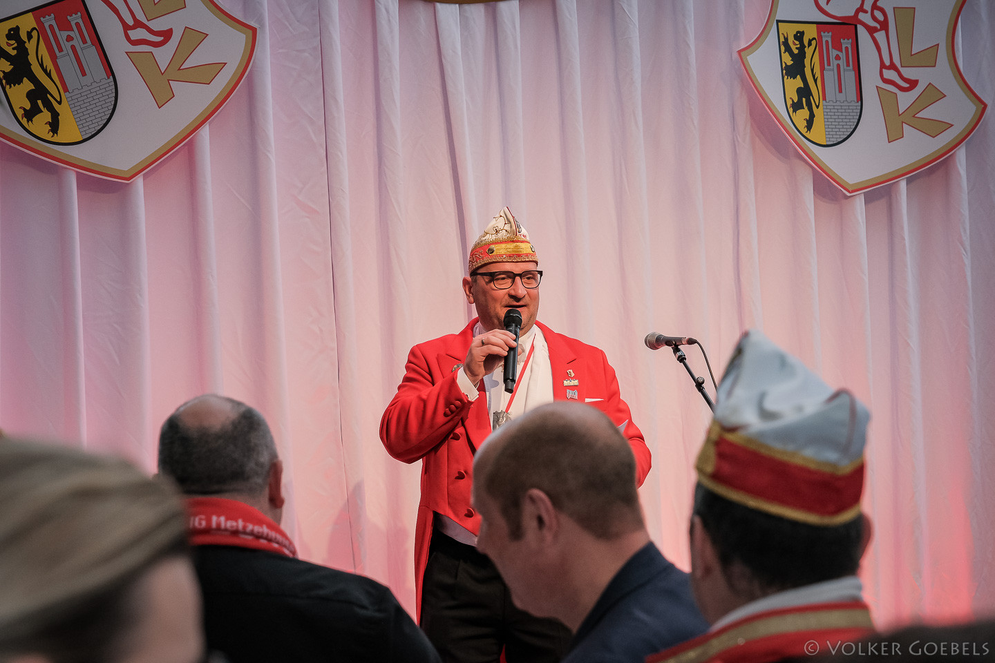 Im Anschluss gab es ein Comeback – und zwar das eines ULK-Redners in der Bütt. Nach diversen Jahren ohne eigene Büttenrede der KG ULK wagte sich unser Ehrenpräsident Jörg Bücher auf die Bühne. In der Rolle des „Anklägers“ bat er das Kleine Rats-Mitglied Horst B. zum Rapport. Mögliche Blutsverwandtschaften sind an dieser Stelle nicht auszuschließen.. Mit einigen lustigen Insider-Geschichten und mit dem wiederholten Sprachbild des „Frikadellentänzers“ sorgte „der Ankläger“ immer wieder für Schmunzler im Saal.