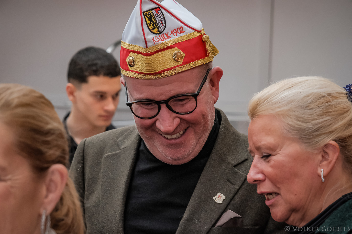 Zunächst feierte der kölsche Spitzenredner „JP Weber“ sein ULK-Debüt. „Die Flitsch“ setzte gleich zu Beginn des Tages ein riesiges Ausrufezeichen mit einem beeindruckenden Vortrag über die kölsche Sproch, die jecke Kultur und das karnevalistische Erbe. Höhepunkte waren neben einigen spitzfindigen Pointen die Lieder „Kölsche Jung“ und „Loss mer singe“ – gemeinsam intoniert mit dem erst 21 Jahre alten Stefan Dahm. JP Weber wurde mit Standing Ovations verabschiedet und kündigte an wieder nach Jülich und zur KG ULK kommen zu wollen. Die Verabredung zwischen ihm und Präsident Peter Plantikow: Nach der Session wird in aller Ruhe auf einem gemeinsamen Format rumgedacht. Lasst Euch also überraschen!