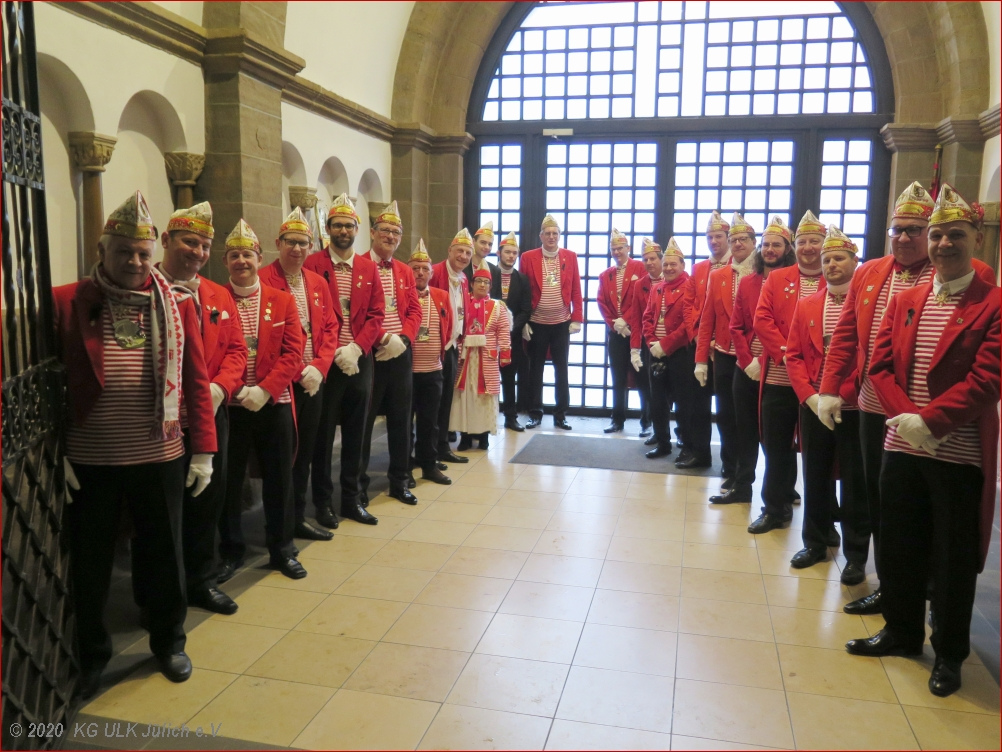 Positive Emotionen hielten 2019/20 die Neuaufnahme von Jan Rey in den Kleinen Rat sowie der besondere Wechsel auf der Position des Zeremonienmeisters von Frank Müller zu Ross Lynch bereit. Darüber hinaus dominierte die Stadthallen-Ersatz-Frage den Jülicher Karneval. Lange hoffte der ULK noch auf eine „Muschel-Sitzung“, letztlich musste aber auch unsere Gesellschaft für ein Jahr ins Übergangs-Zelt. In weiser Voraussicht hatten unsere Kreativköpfe zuvor das Sessions-Motto in alle Richtungen interpretierbar gestaltet. Und so blieb die „Muschelsuche am Rurstrand“ aktueller denn je.