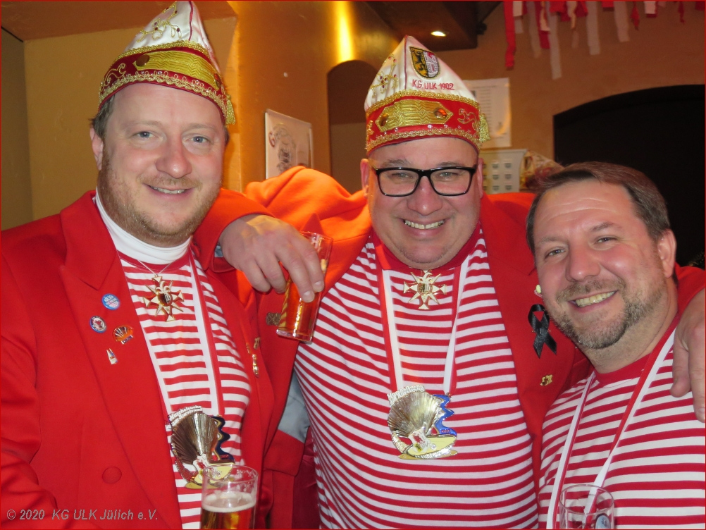 Positive Emotionen hielten 2019/20 die Neuaufnahme von Jan Rey in den Kleinen Rat sowie der besondere Wechsel auf der Position des Zeremonienmeisters von Frank Müller zu Ross Lynch bereit. Darüber hinaus dominierte die Stadthallen-Ersatz-Frage den Jülicher Karneval. Lange hoffte der ULK noch auf eine „Muschel-Sitzung“, letztlich musste aber auch unsere Gesellschaft für ein Jahr ins Übergangs-Zelt. In weiser Voraussicht hatten unsere Kreativköpfe zuvor das Sessions-Motto in alle Richtungen interpretierbar gestaltet. Und so blieb die „Muschelsuche am Rurstrand“ aktueller denn je.