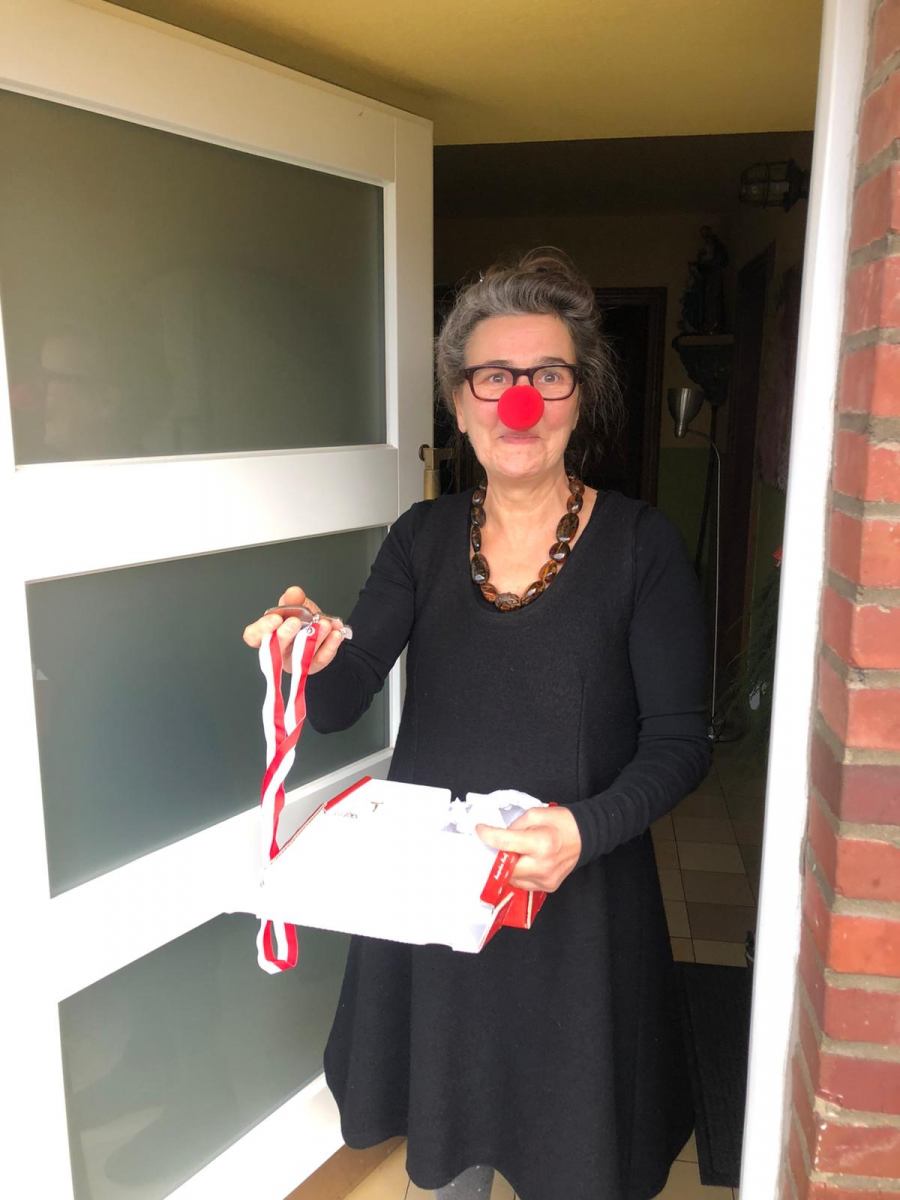 Trotz dieser Generalabsage machte sich der Kleine Rat viele Gedanken über den persönlichen Kontakt zu seinen Senatorinnen und Senatoren, die unserer Gesellschaft in bemerkenswerter Weise ihre Treue hielten. Dafür an dieser Stelle nochmal ein riesiger Dank. Und so kam es, dass wir vor Weihnachten – im Dezember 2020 – unsere sogenannten „ULK-Boxen“ zu den Senatorinnen und Senatoren nach Hause brachten. Darin unter anderem der Sessionsorden, eine ULK-Maske, ein Prosecco, eine Konfettikanone oder eine rote Clownsnase. Außerdem lag in jeder Box unser Sessionsmagazin, das in anderer Form über die Geschehnisse rund um unsere KG berichtete: So wurden im Heft die 22 neuen Senatorinnen und Senatoren sowie die 3 neuen Jugendsenatsmitglieder vorgestellt oder ein Interview mit unserem ULK-Vize und Bürgermeister Axel Fuchs veröffentlicht. Impressionen vom Verteilen unserer ULK-Box gibt es hier: