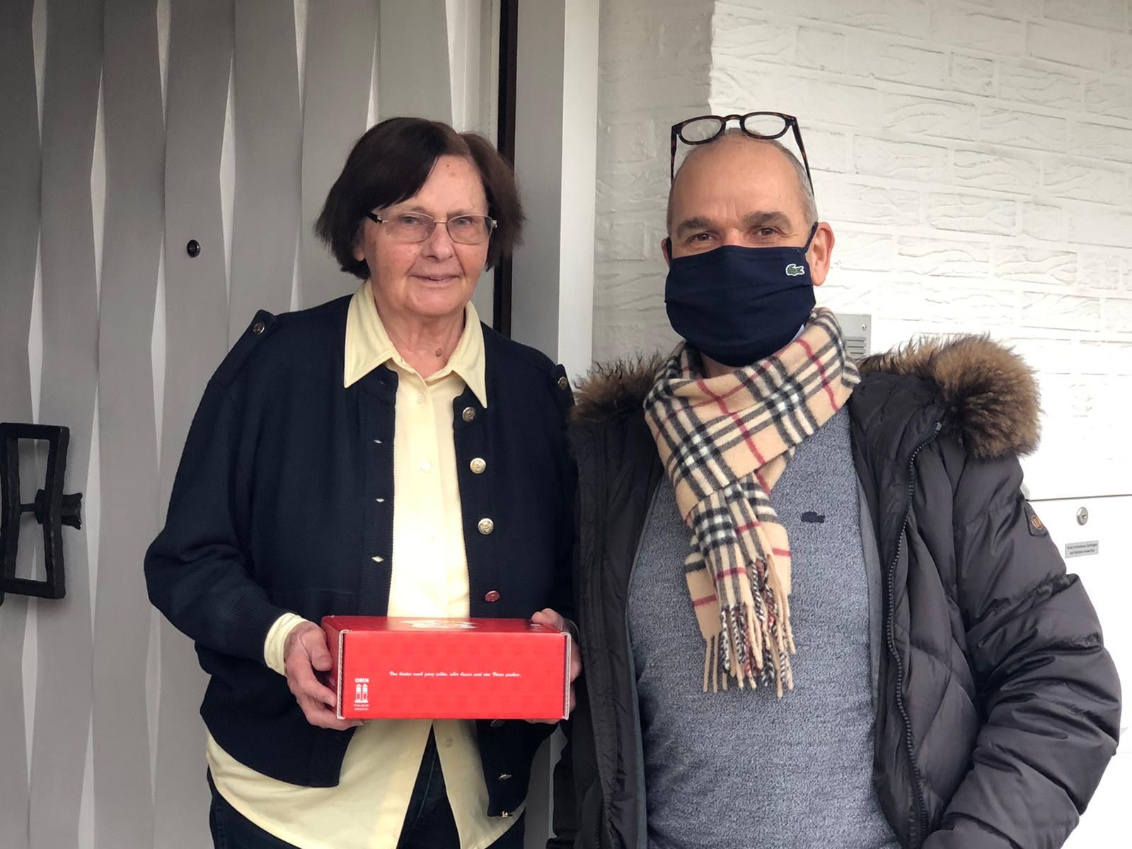 Trotz dieser Generalabsage machte sich der Kleine Rat viele Gedanken über den persönlichen Kontakt zu seinen Senatorinnen und Senatoren, die unserer Gesellschaft in bemerkenswerter Weise ihre Treue hielten. Dafür an dieser Stelle nochmal ein riesiger Dank. Und so kam es, dass wir vor Weihnachten – im Dezember 2020 – unsere sogenannten „ULK-Boxen“ zu den Senatorinnen und Senatoren nach Hause brachten. Darin unter anderem der Sessionsorden, eine ULK-Maske, ein Prosecco, eine Konfettikanone oder eine rote Clownsnase. Außerdem lag in jeder Box unser Sessionsmagazin, das in anderer Form über die Geschehnisse rund um unsere KG berichtete: So wurden im Heft die 22 neuen Senatorinnen und Senatoren sowie die 3 neuen Jugendsenatsmitglieder vorgestellt oder ein Interview mit unserem ULK-Vize und Bürgermeister Axel Fuchs veröffentlicht. Impressionen vom Verteilen unserer ULK-Box gibt es hier: