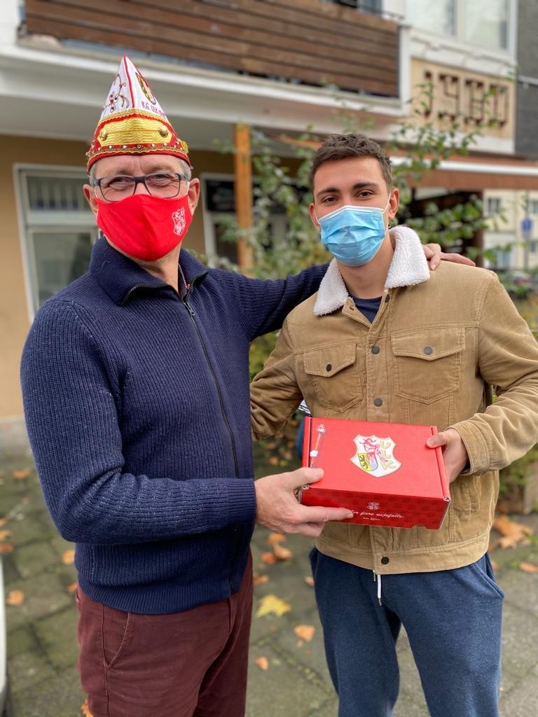 Trotz dieser Generalabsage machte sich der Kleine Rat viele Gedanken über den persönlichen Kontakt zu seinen Senatorinnen und Senatoren, die unserer Gesellschaft in bemerkenswerter Weise ihre Treue hielten. Dafür an dieser Stelle nochmal ein riesiger Dank. Und so kam es, dass wir vor Weihnachten – im Dezember 2020 – unsere sogenannten „ULK-Boxen“ zu den Senatorinnen und Senatoren nach Hause brachten. Darin unter anderem der Sessionsorden, eine ULK-Maske, ein Prosecco, eine Konfettikanone oder eine rote Clownsnase. Außerdem lag in jeder Box unser Sessionsmagazin, das in anderer Form über die Geschehnisse rund um unsere KG berichtete: So wurden im Heft die 22 neuen Senatorinnen und Senatoren sowie die 3 neuen Jugendsenatsmitglieder vorgestellt oder ein Interview mit unserem ULK-Vize und Bürgermeister Axel Fuchs veröffentlicht. Impressionen vom Verteilen unserer ULK-Box gibt es hier: