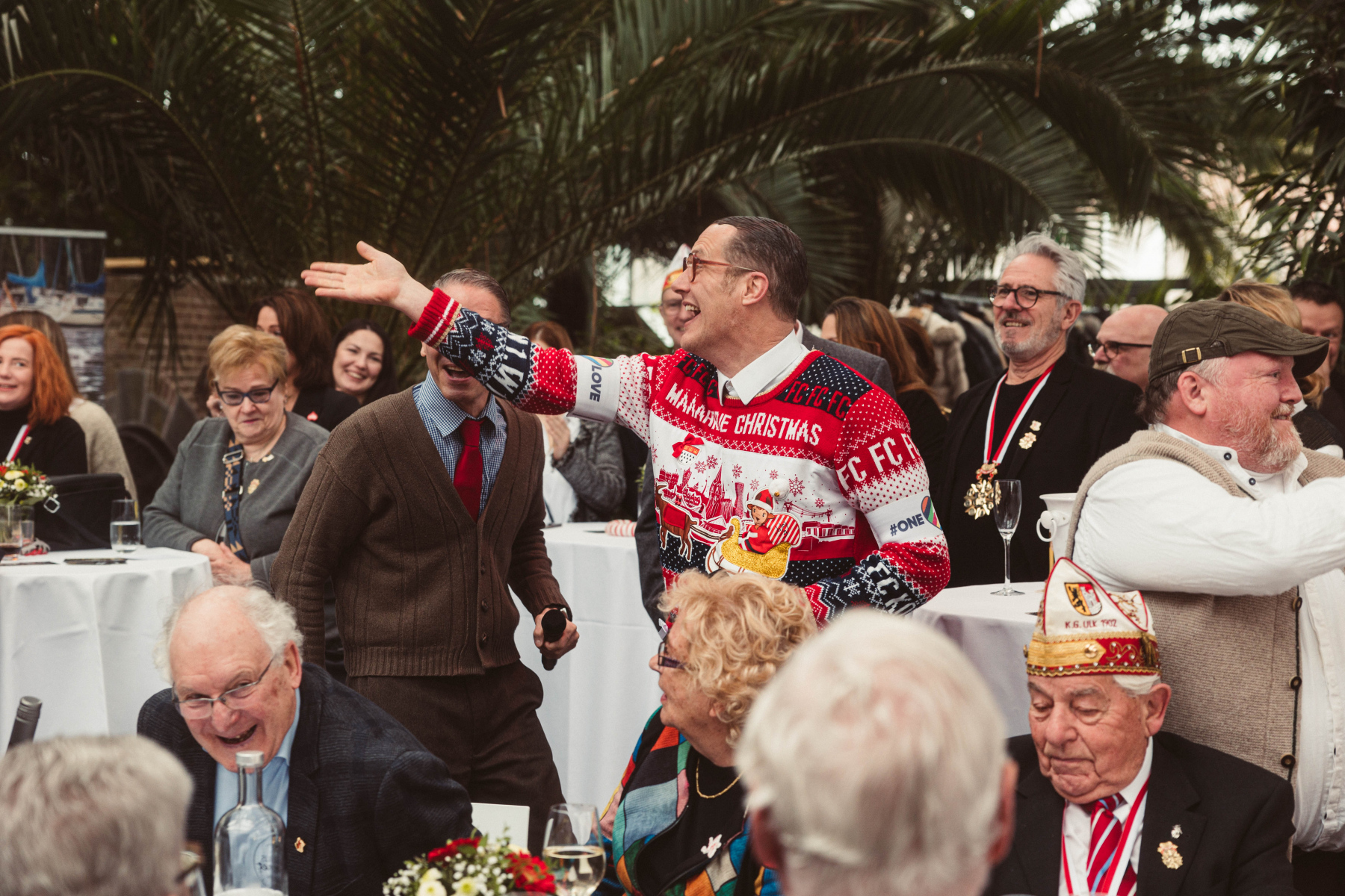Echte Highlights waren die Auftritte der kölschen Spitzenkräfte Willi & Ernst, Wicky Junggeburth und vom „Klimpermännche“ Thomas Cüpper. Alle drückten der Veranstaltung auf ganz eigene Art ihren Stempel auf: Willi und Ernst durch ihre überragende Interaktion mit dem Publikum, Wicky Junggeburth mit einem gelungenen Ritt durch die Karnevalshistorie und „Et Klimpermännche“ durch Geschichten aus dem Leben und kleinen Krätzchen. Übrigens wurden alle Künstler von unserem aktuellen Zeremonienmeister Ross Lynch sowie dessen Vorgängern Frank Lieth und Frank Müller auf die Bühne begleitet.