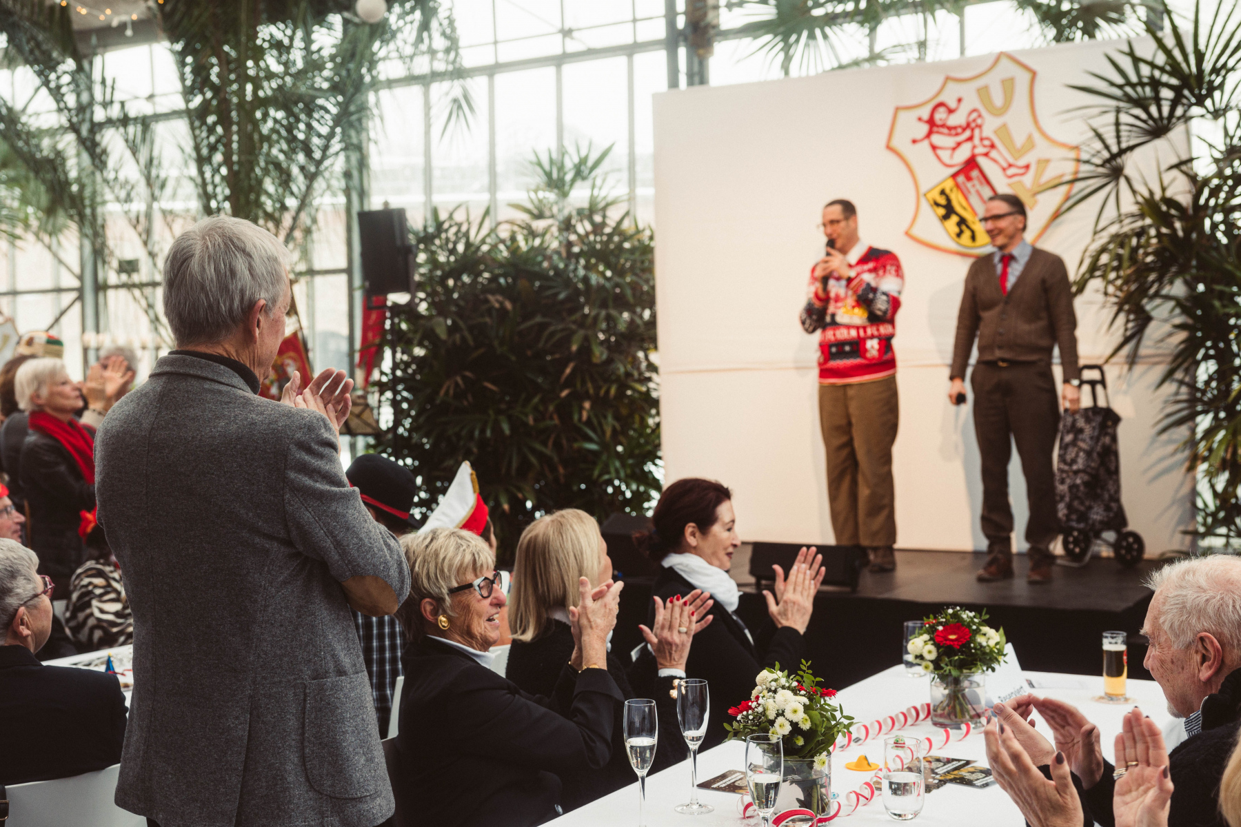 Die Antwort gaben knapp 160 Gäste am Sonntagmorgen in der teils bestuhlten Blumenhalle. Insgesamt wurde es zwar etwas lauter als gedacht, unser Plan ging aber voll auf. Das gut dreieinhalbstündige Programm, maßgeblich geplant von unserem neuen Literaten Cornel Cremer und ULK-Vize Frank Lieth, wusste nicht nur zu begeistern, sondern war zu keiner Zeit langweilig. Schenkt man unseren Gästen Glauben, war es ein gelungener Mix aus Reden, Musik, ULK-Anekdötchen und jeckem Frühschoppen.