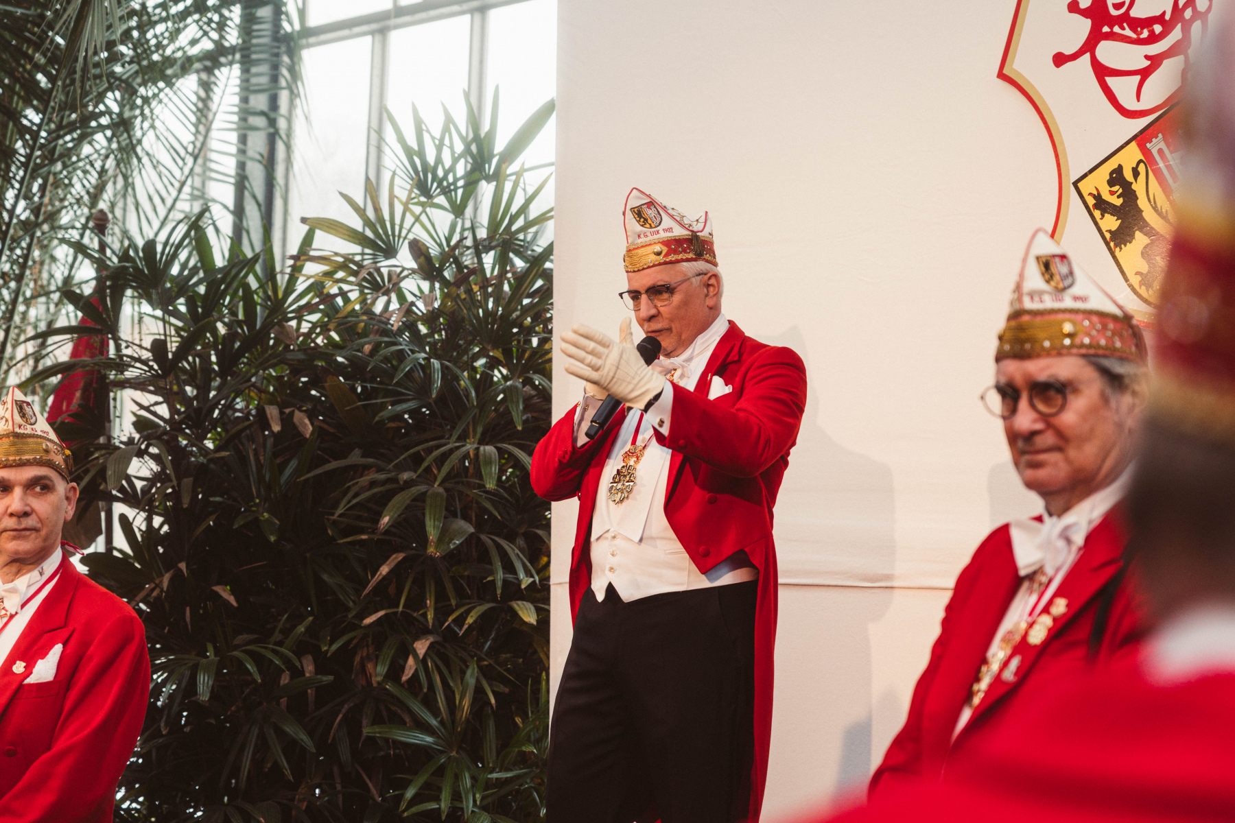 Ein emotionaler Höhepunkt für die ULK-Familie war darüber hinaus die Auszeichnung unseres mittlerweile 93 Jahre alten Kleinen-Rats-Bruders Berthold Rey für 65 Jahre Kleiner Rat. „Bätes“, der für den ULK jahrelang in der Bütt brillierte, erhielt mit dem goldenen Till eine Ehrung, die bis dato nur ein einziges weiteres Mal verliehen wurde: unserem verstorbenen Ehrenpräsidenten Matthias Hellmann. Matthias‘ Nachfolger Jörg Bücher würdigte Berthold als ein „absolutes ULK-Urgestein, das jede Menge für unsere Gesellschaft geleistet hat“. Heino Bücher legte nach: „Ich habe an Berthold immer seinen feinen Humor bewundert. Er war für mich ein Vorbild und Inspiration, überhaupt den Schritt in die Bütt zu wagen!“