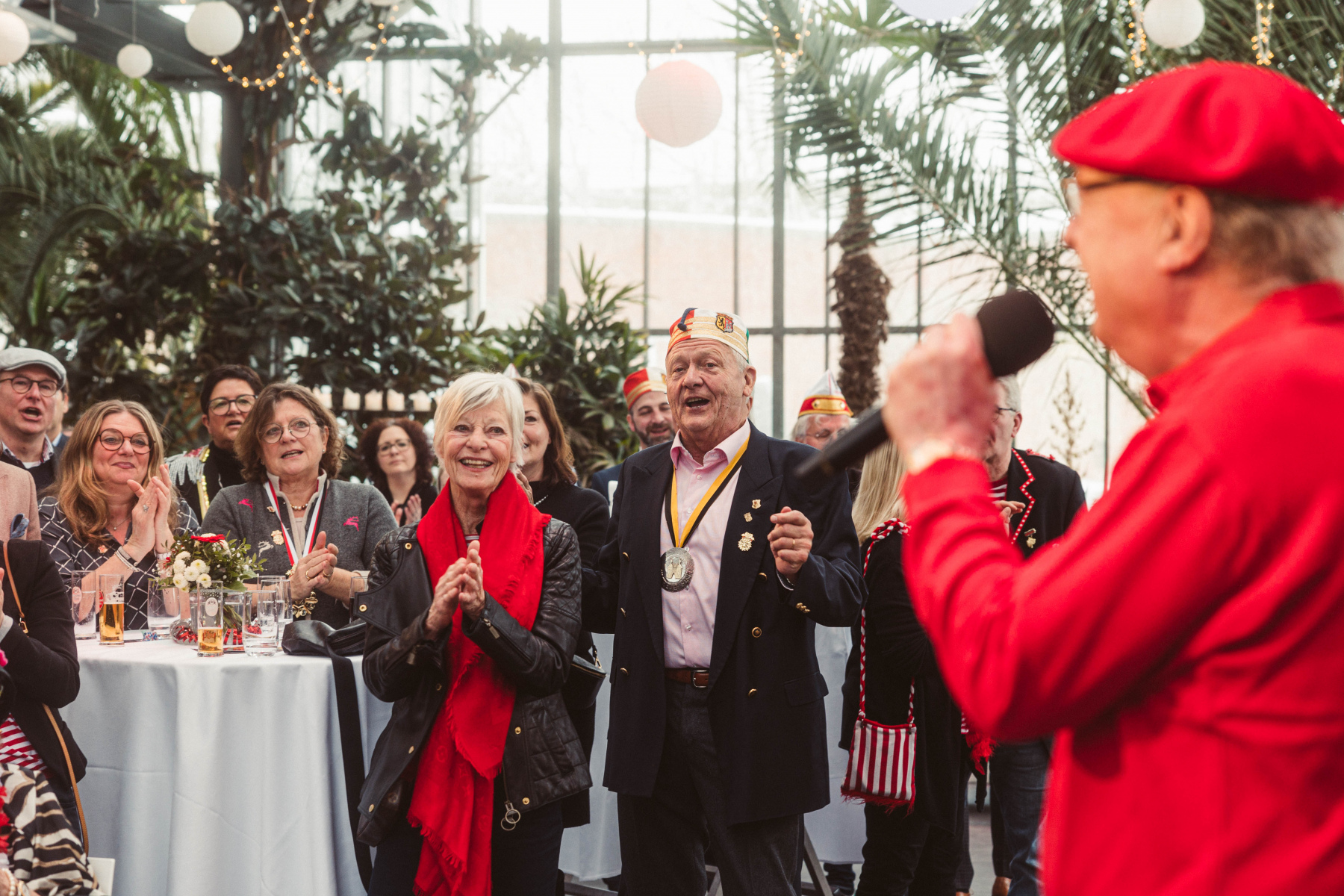 Ein emotionaler Höhepunkt für die ULK-Familie war darüber hinaus die Auszeichnung unseres mittlerweile 93 Jahre alten Kleinen-Rats-Bruders Berthold Rey für 65 Jahre Kleiner Rat. „Bätes“, der für den ULK jahrelang in der Bütt brillierte, erhielt mit dem goldenen Till eine Ehrung, die bis dato nur ein einziges weiteres Mal verliehen wurde: unserem verstorbenen Ehrenpräsidenten Matthias Hellmann. Matthias‘ Nachfolger Jörg Bücher würdigte Berthold als ein „absolutes ULK-Urgestein, das jede Menge für unsere Gesellschaft geleistet hat“. Heino Bücher legte nach: „Ich habe an Berthold immer seinen feinen Humor bewundert. Er war für mich ein Vorbild und Inspiration, überhaupt den Schritt in die Bütt zu wagen!“